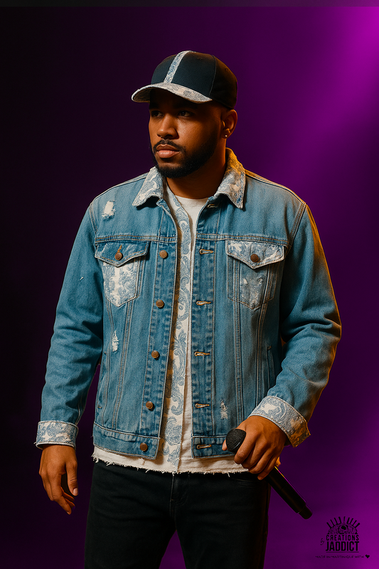 JEAN JACKET - BY JADDICT - SKY BLUE BANDANA MOTIF XL/XXL
